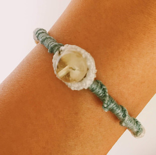 後ろでヒモを結ぶところは、クラック水晶がついており、